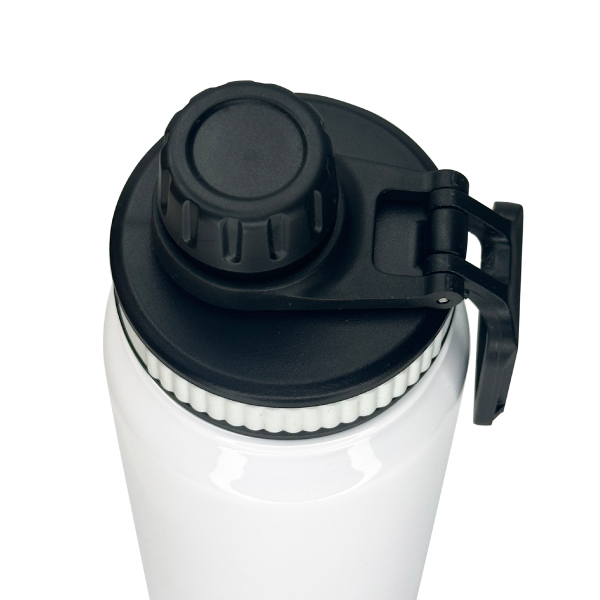 750ml double wall stainless steel bottle black matte powder-coated and white sublimation finish with handle and silicone design