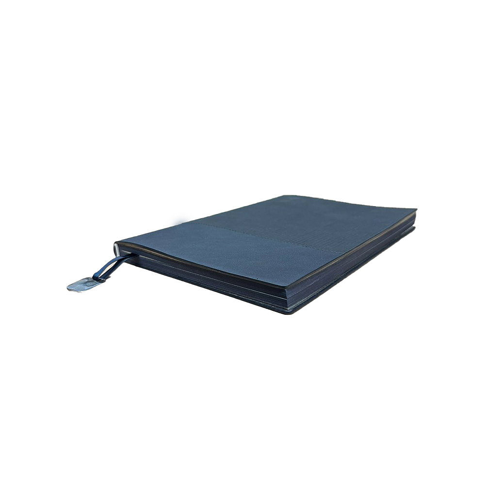 Black, Grey & Blue Flexible A5 soft cover PU notebook with ribbon Metal Plate bookmark.