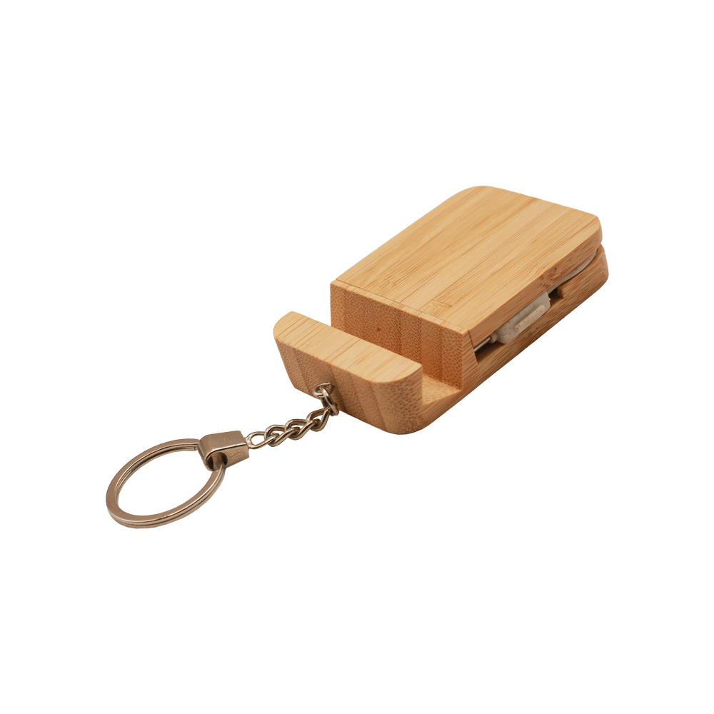 Eco-Friendly 5-in-1 Charging with Mobile Stand Keyring Made with Bamboo & Wheat Straw