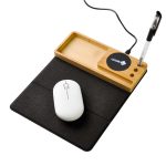 15W RPET Wireless Charging Eco-Friendly Mousepad with Detachable Magnetic Wooden Tray & Light-Up Logo By Zeon