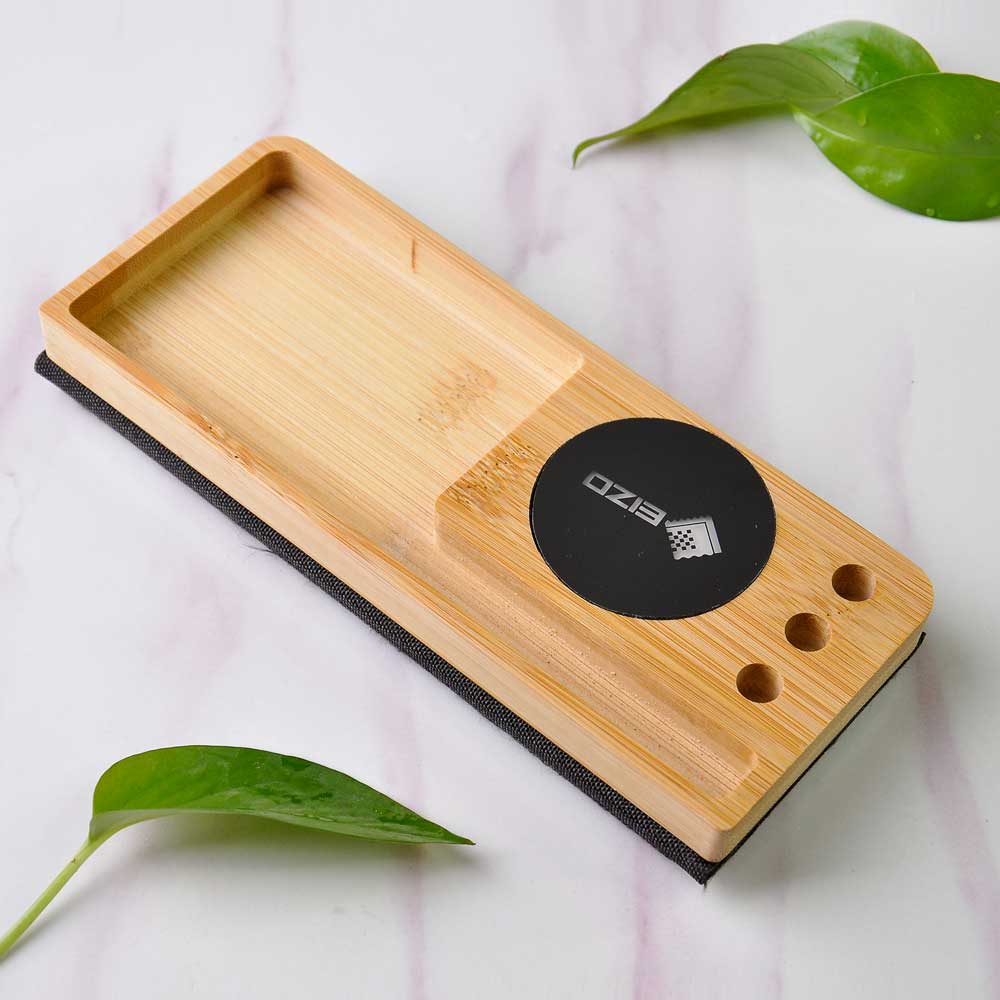 Its foldable design features a detachable magnetic wooden tray, ideal for storing small essentials while adding a sophisticated touch to your workspace. The integrated 15W wireless charging pad (Type-C) delivers fast, efficient charging for Qi-enabled devices, while the built-in pen holder keeps your desk neatly organized.