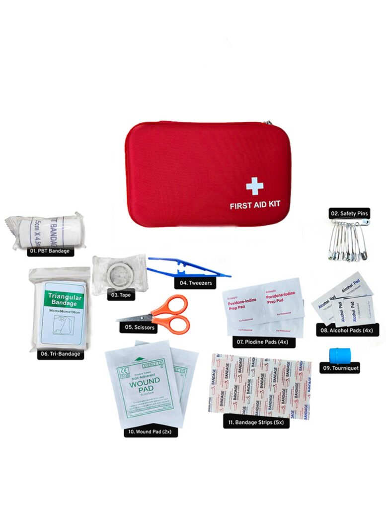 First Aid Case (1x) – Waterproof and compact zippered pouch.